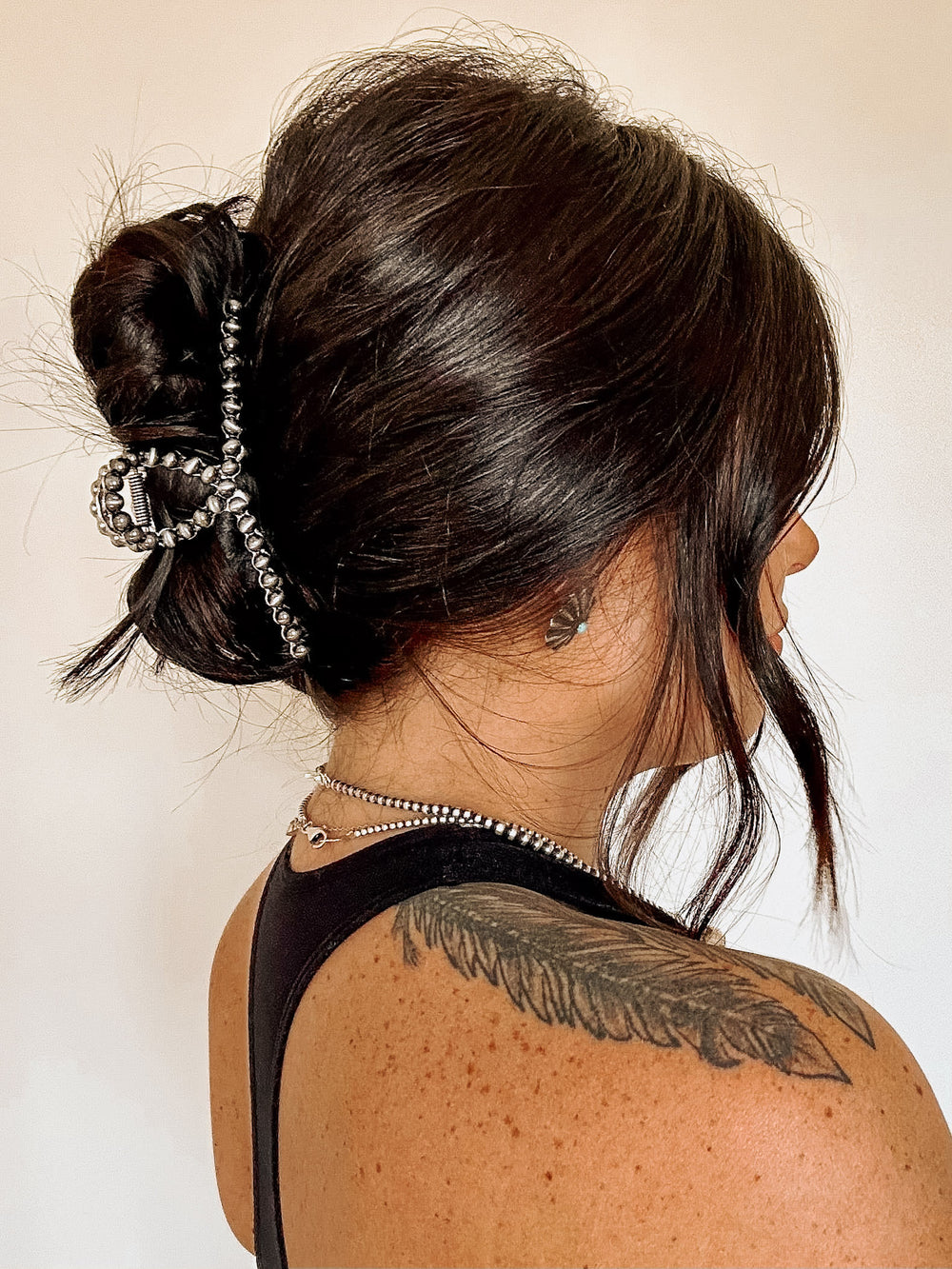 + Faux Navajo pearl bead, heavy metal, extra hold claw clip