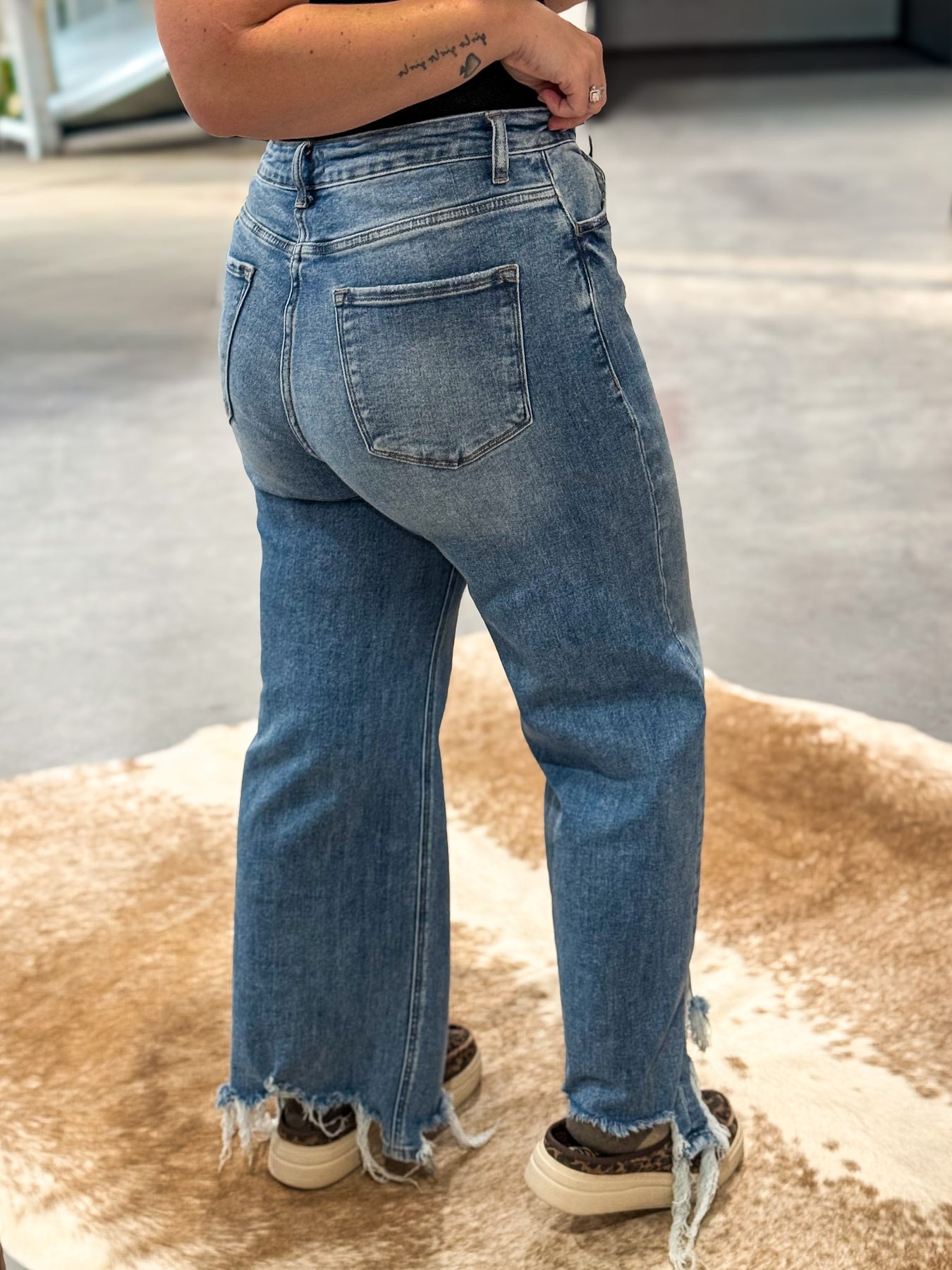 + Ankle length distressed hem jean