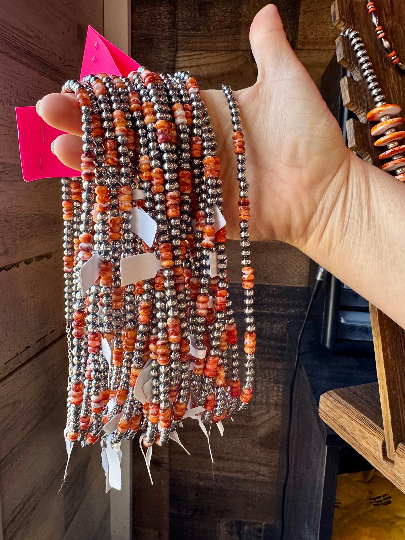 + Beads: 5mm sterling pearls with red/orange spiny oyster