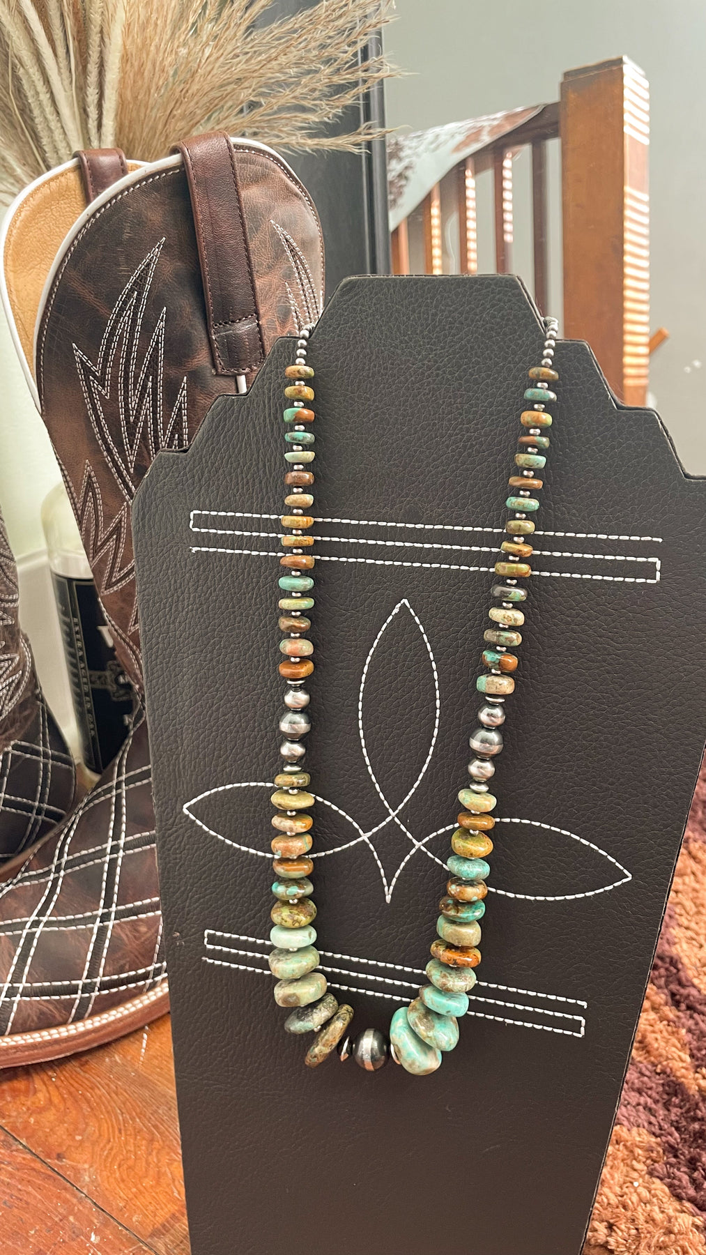 + Made with genuine green turquoise stones & sterling silver pearls.
