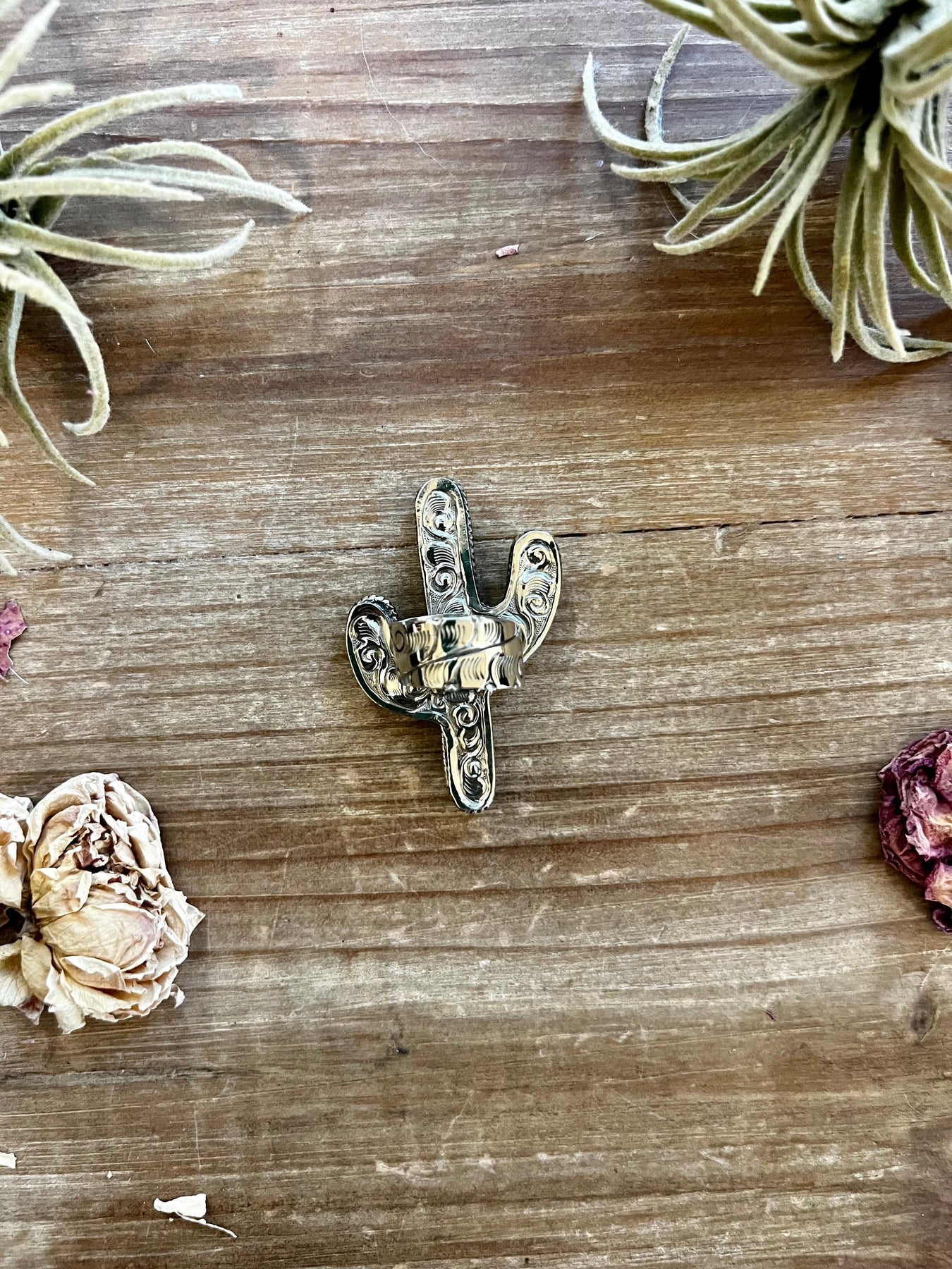 Blue Turquoise Cactus Ring - Adjustable - Brass silver
