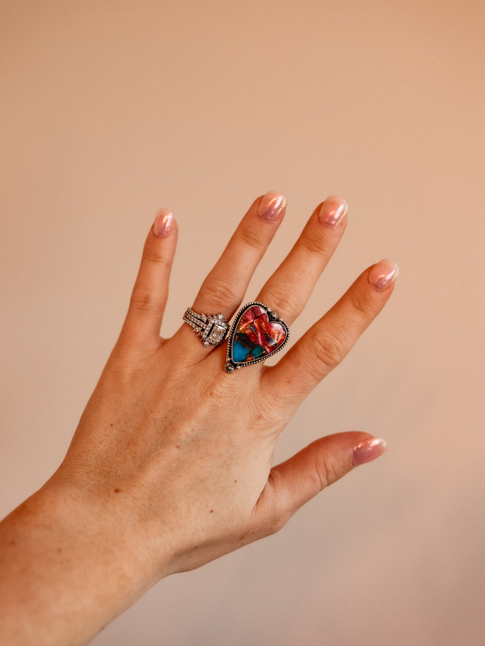 + Dahlia turquoise heart shaped adjustable ring
