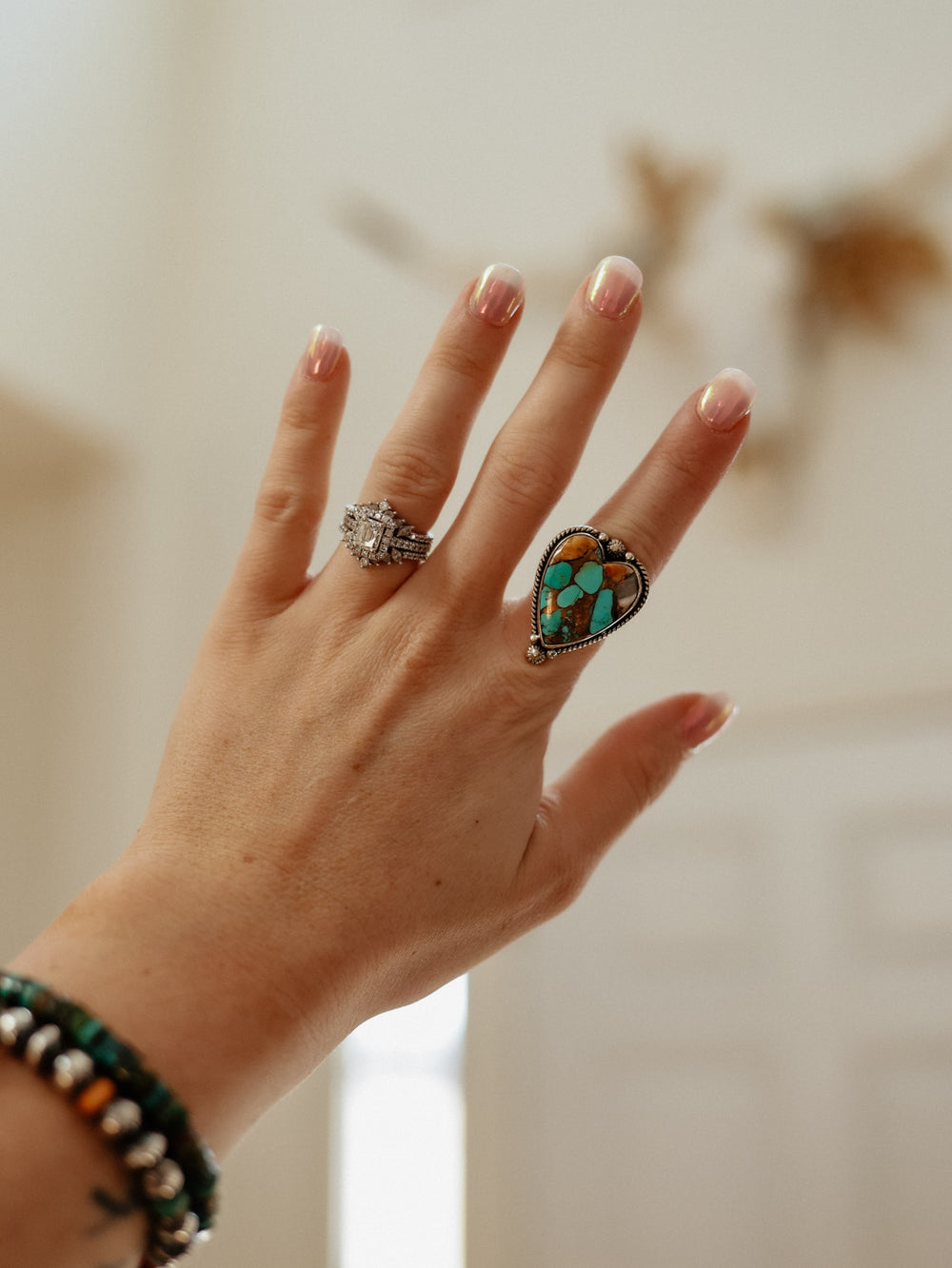 + Spiny Oyster turquoise heart shaped adjustable ring
