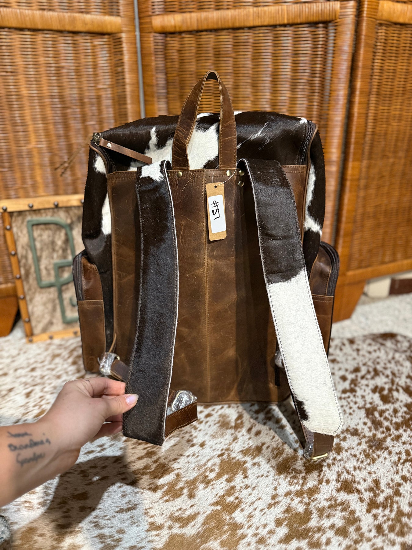 + Carry your essentials in style with this gorgeous cowhide backpack. Oversized tooled leather and cowhide backpack that is perfect for school, work, diaper bag, or just to haul in your car! This also makes a great carry on for your next trip.